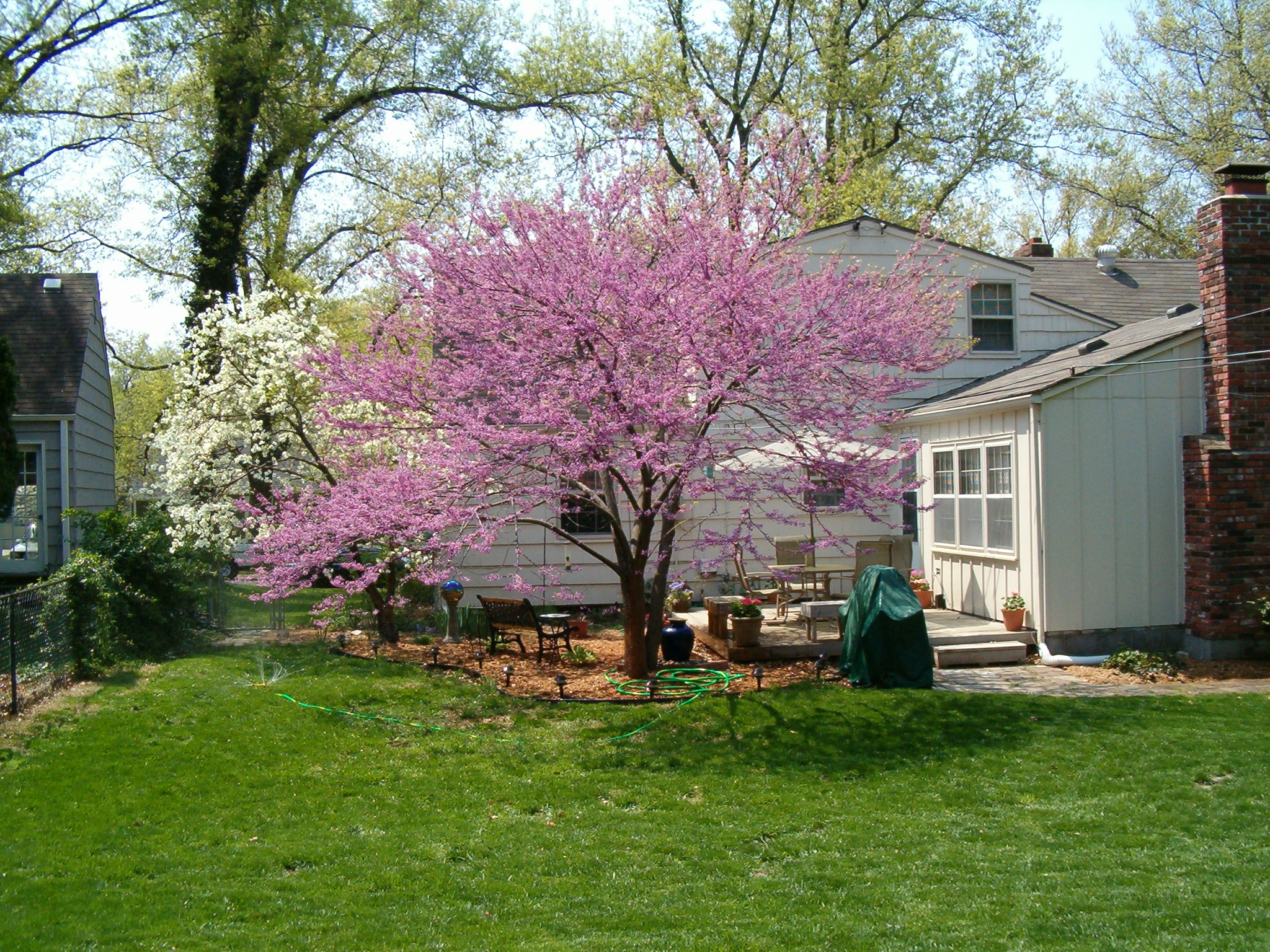 Last spring I noticed that the new little dogwood that we had planted the year before was blooming. It reminded me of the beautiful red bud tree we had in our backyard at our house in Prairie Village. I was teaching 4th grade many years ago and the students received free trees from the Missouri Conservation Department. At the end of the day three little trees were left. They looked dead, but I wrapped them in damp paper towels and brought them home. David and Katie planted the little trees together next to our patio. We didn’t think they would live, but the next spring they sprouted leaves and even some blooms. The trees grew together and created one large beautiful tree that shaded our deck and continued to amaze us with gorgeous blooms each spring.